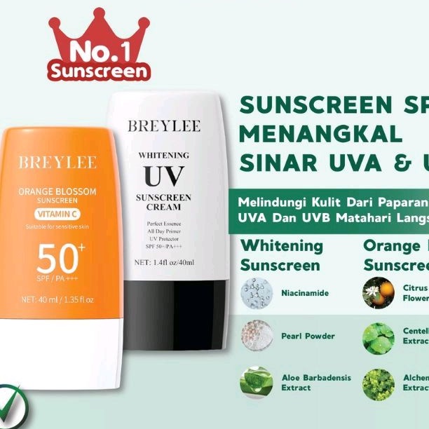 BREYLEE Whitening UV SUNSCREEN CREAM Krim Tabir Surya SPF 50++ Pelindung Wajah dari Sinar Matahari Anti-Aging