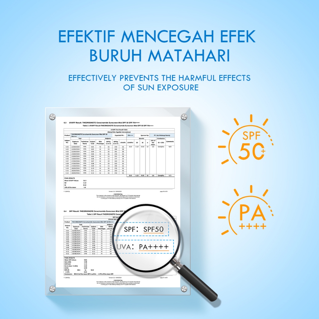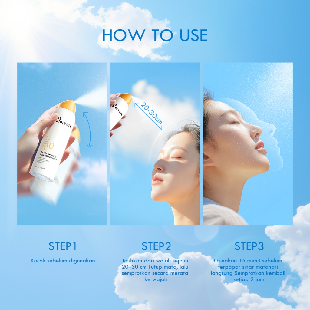 The Originote Ceracinamide Sunscreen Mist SPF 50 PA++++ - UV - Melembabkan Wajah No Whitecast Protector Sunscreen Spray
