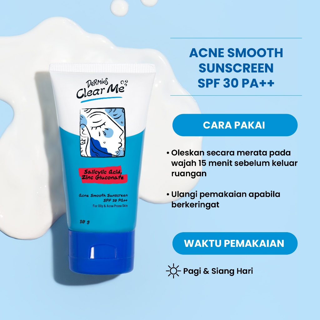 DERMIES Clear Me by ERHA Acne Smooth Sunscreen - Tabir Surya Moisturizing SPF 30 PA++ Aman untuk Kulit Berjerawat dan Se