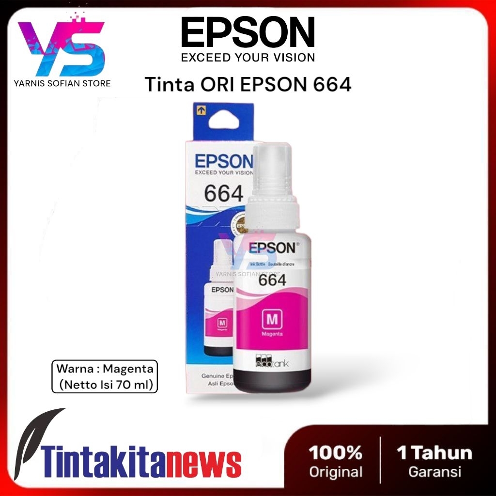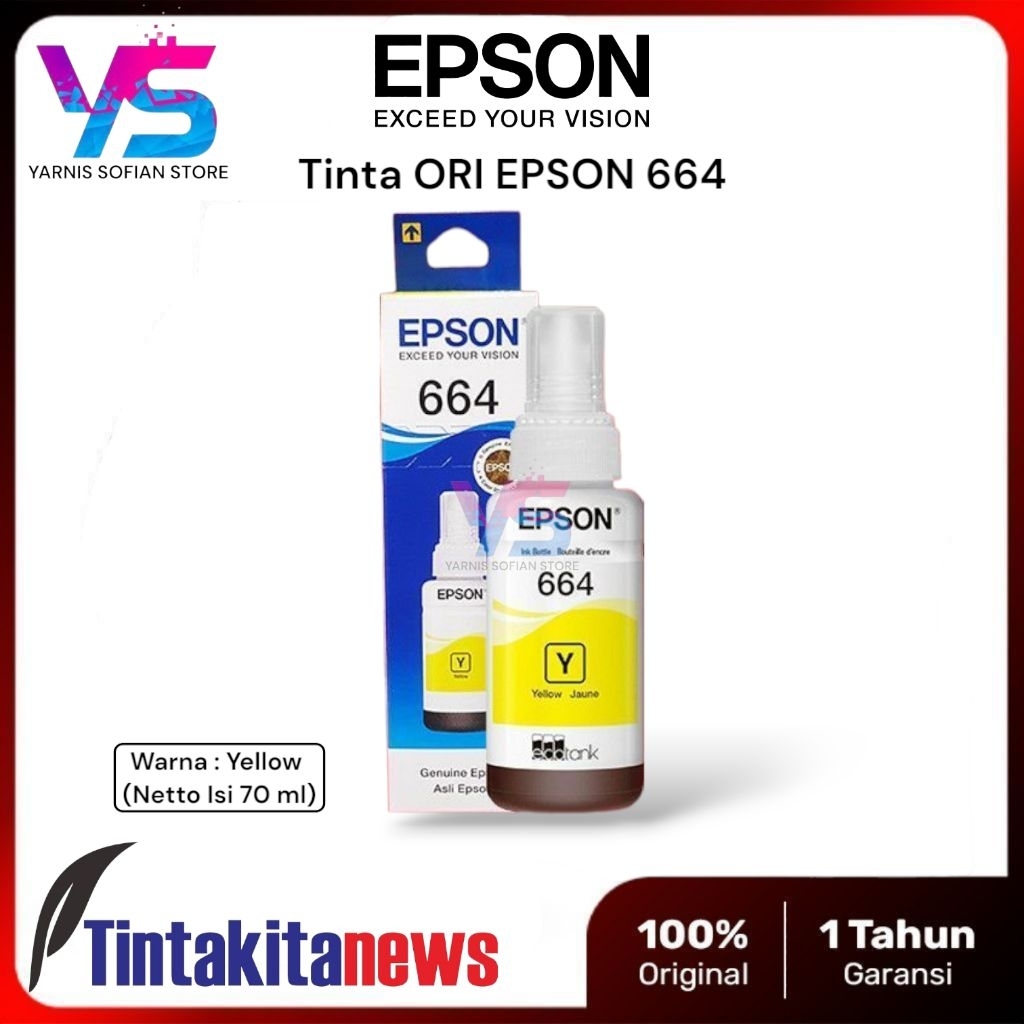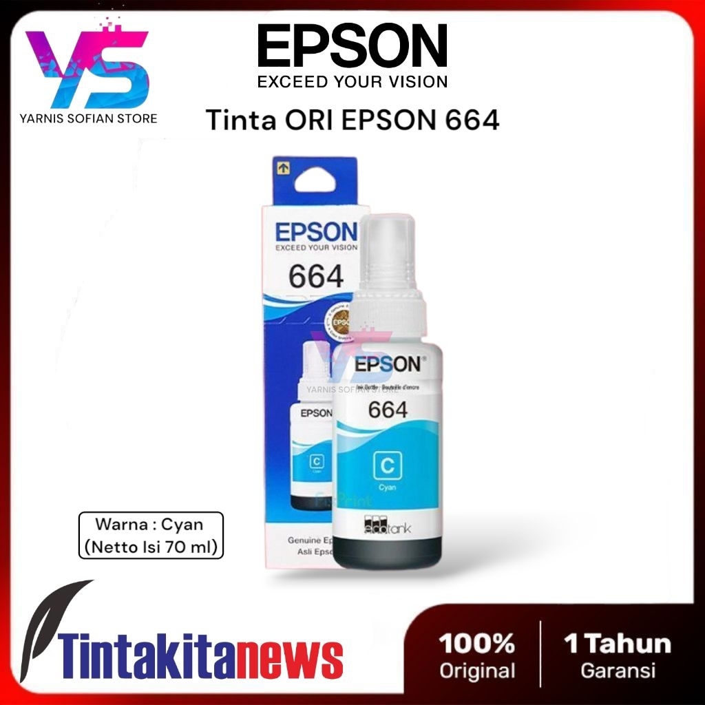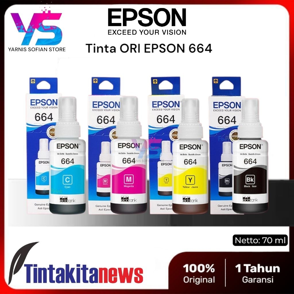 Tinta Epson 664 / T664 Original Untuk Printer Series L100 L110 L120 L220 L300 L310