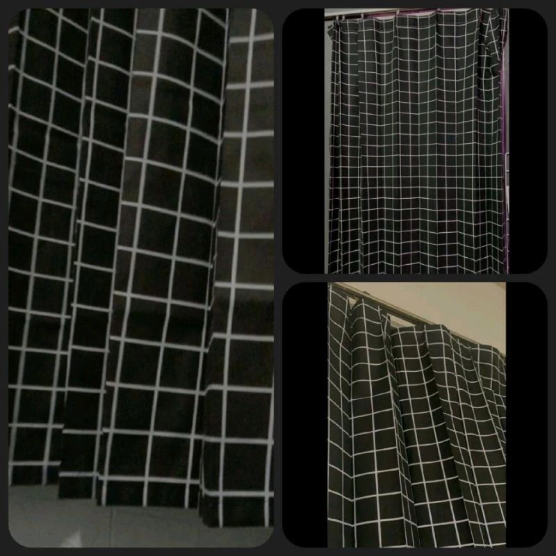 Gorden Jendela Motif Kotak-Kotak/ Hordeng Pintu/Tirai Jendela Aestethic Minimalisis Bahan Katun Free Kawat S