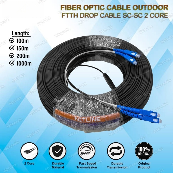 Kabel Precon FO Fiber Optic 2 Core SC UPC Outdoor Dropcore 50 60 75 80 100 150 200 250 300 350 400 500 1000 Meter M NETL