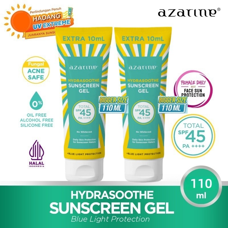 [BIG SIZE]Azarine 2PCS Hydrasoothe Sunscreen Gel SPF45 PA++++ [110ml] READY&BPOM