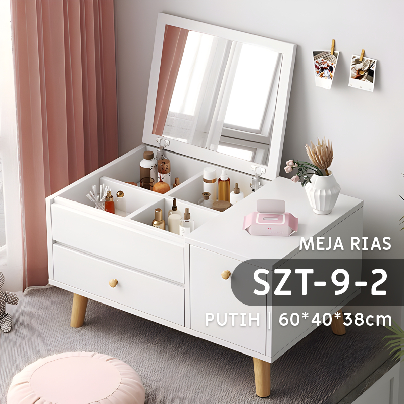 Furniture - Meja Rias Minimalis - Meja Kamar Aesthetic Modern Kayu Dengan Cermin Laci Serbaguna