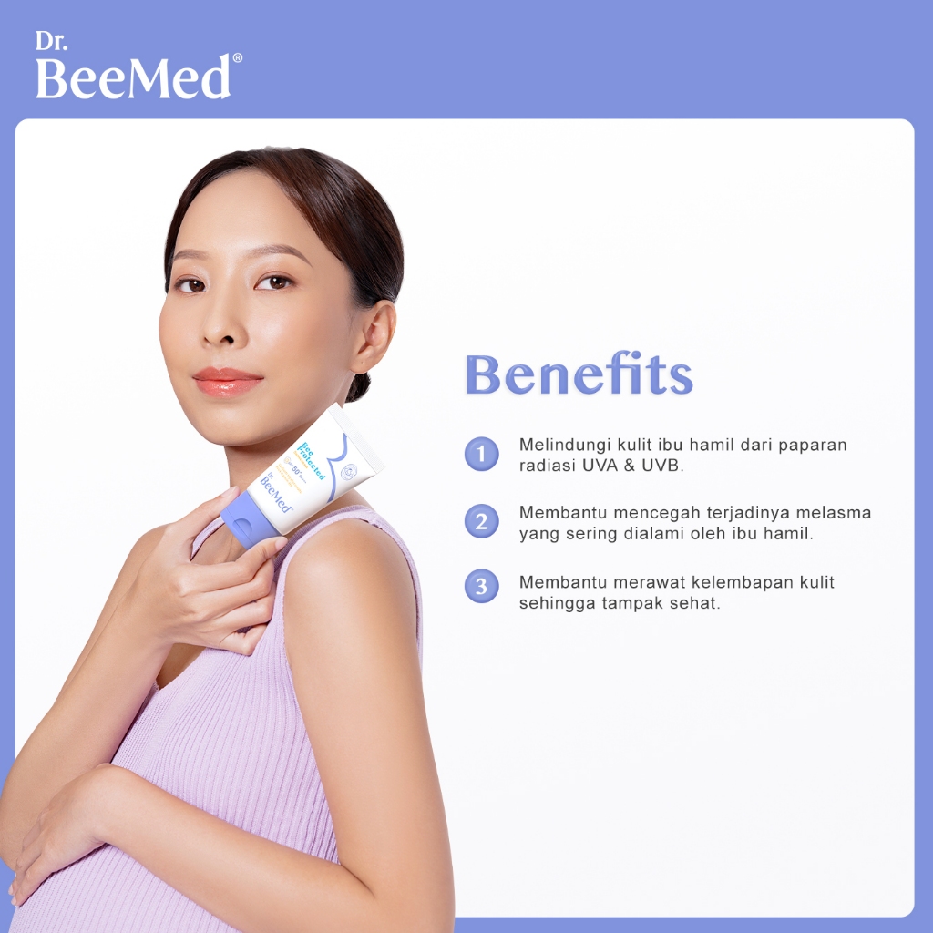 Dr.BeeMed Bee Protected Sunscreen SPF 50 PA+++ - 100 PERSEN Mineral Sunscreen Pelembap Kulit Wajah Aman untuk Ibu Hamil & Meny