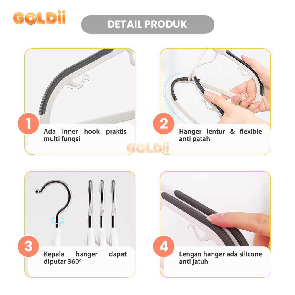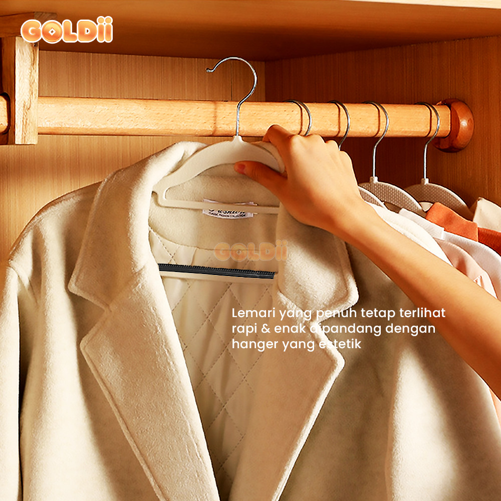 Goldii - 10 Pcs Hanger Gantungan Baju Dewasa Plastik Tebal Karet Anti Slip Berkualitas
