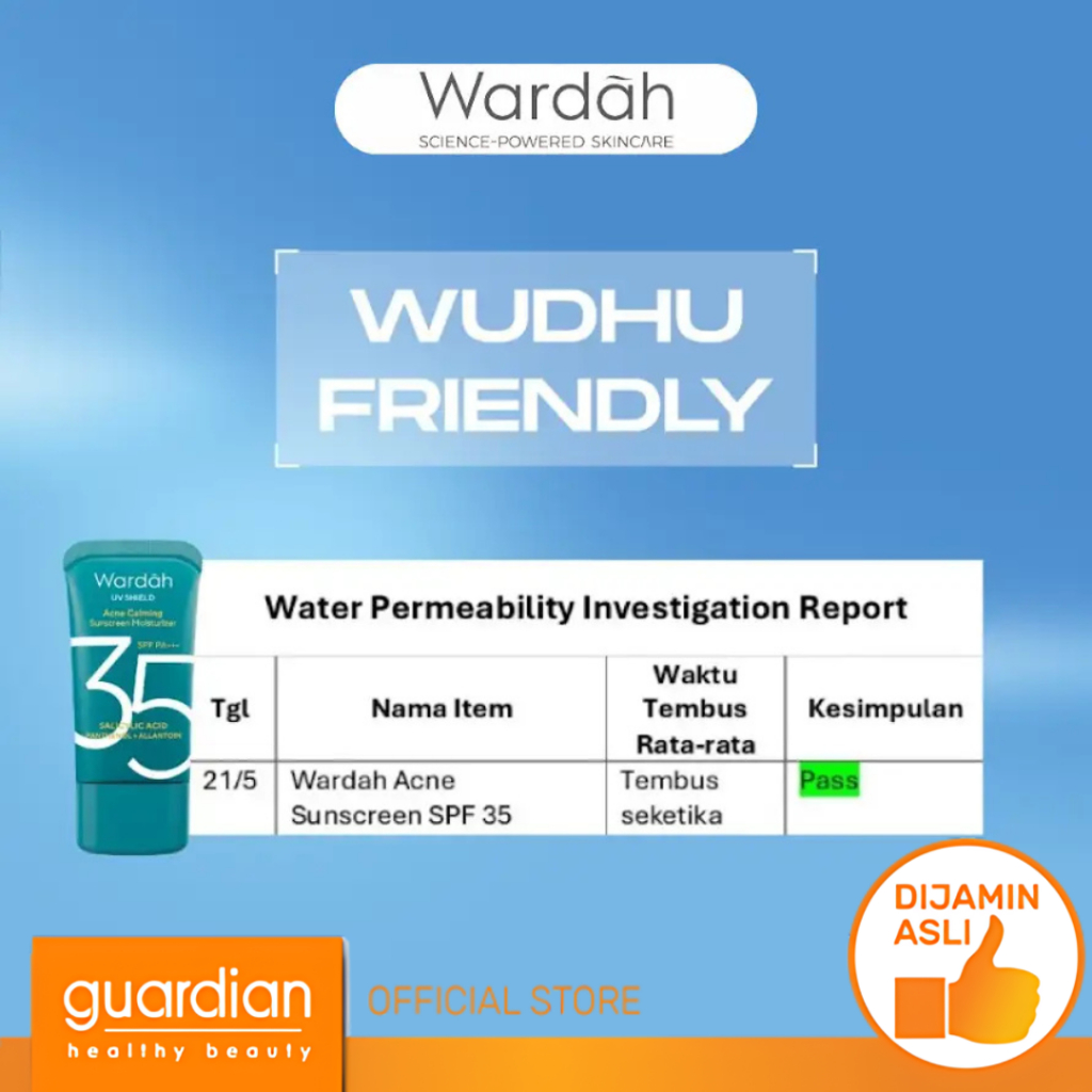 Wardah UV Shield Acne Calming Sunscreen Moisturizer SPF 35 PA+++ - Sunscreen untuk komedo, jerawat dan bekas jerawat, ku