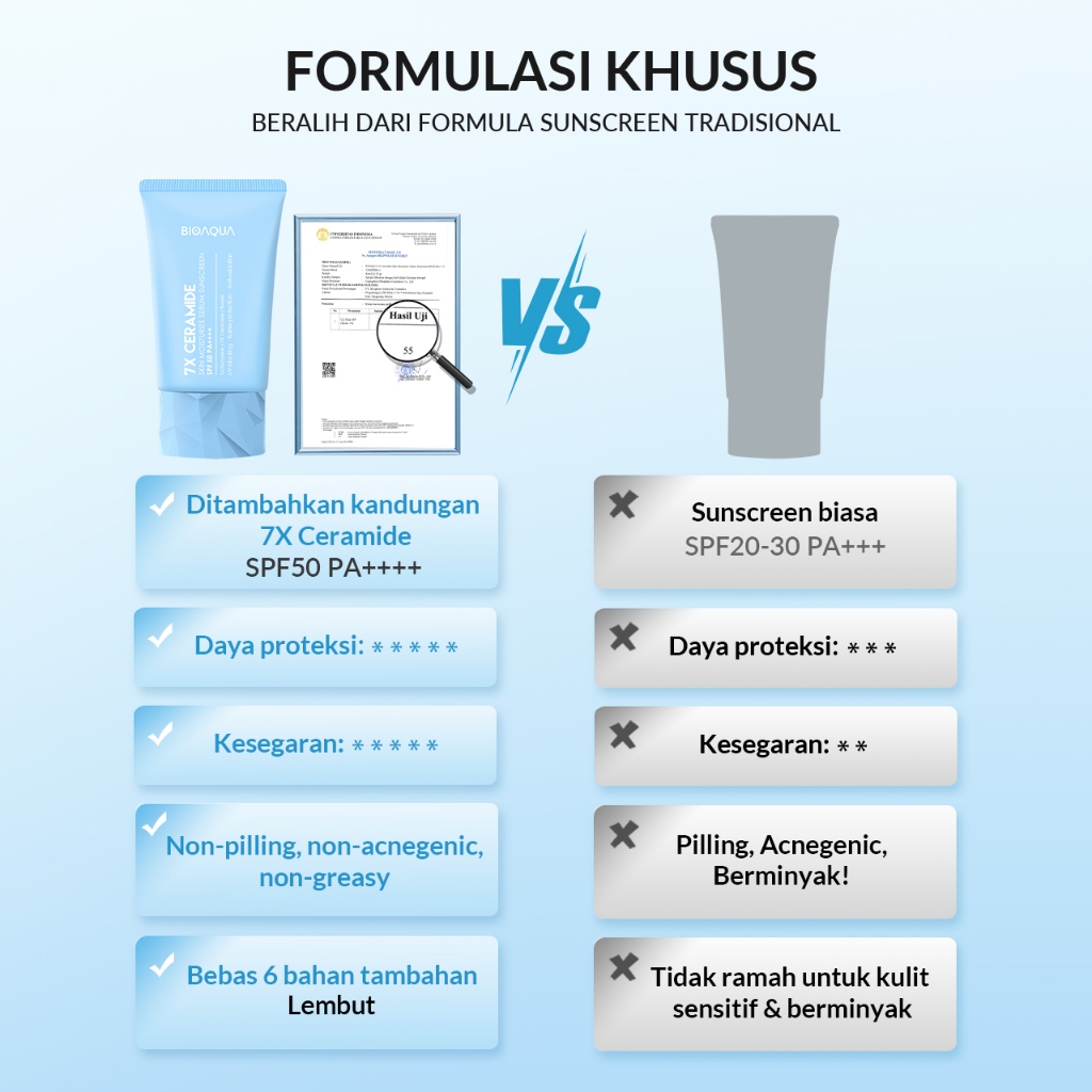 BIOAQUA 7X Ceramide Serum Sunscreen SPF 50 PA ++++ Sunscreen Gel Sunblock Wajah 12H Sun Protection 0 PERSEN Alkohol, Waterproo