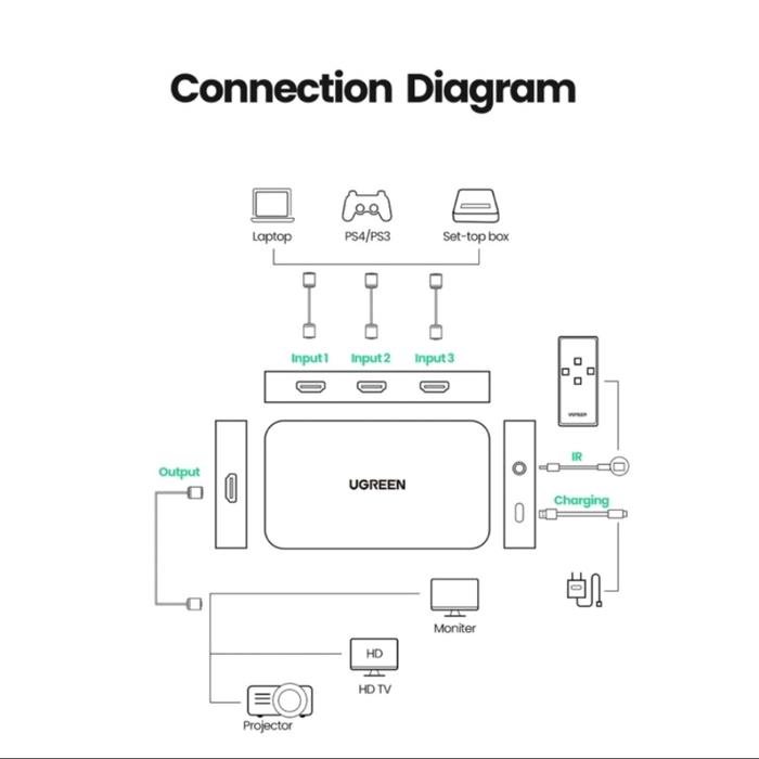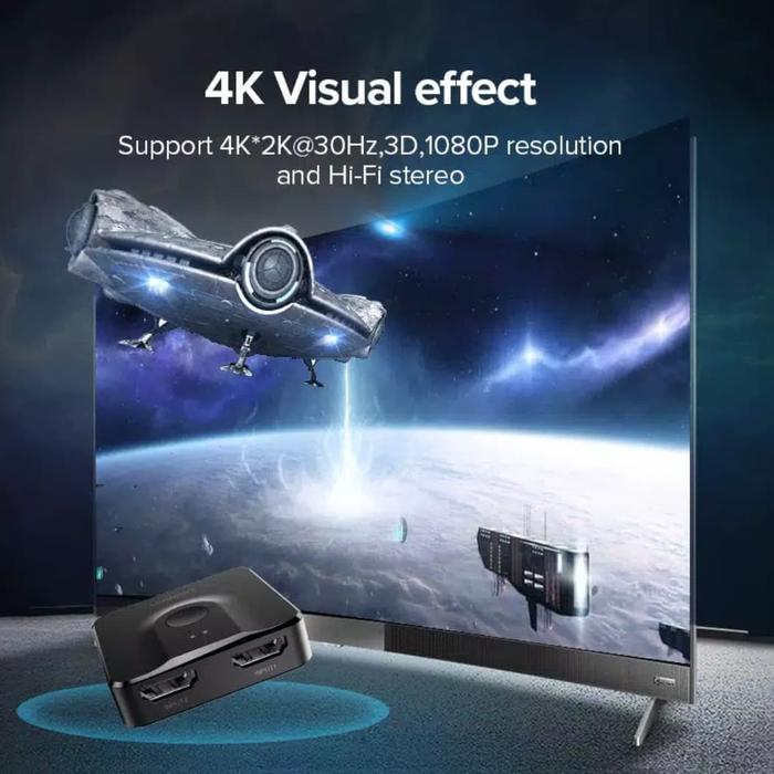 UGREEN SWITCHER SELECTOR HDMI 4K 2 IN 1 OUT BI-DIRETION BERBAGI 2 HDMI - 3 IN 1 (80125)