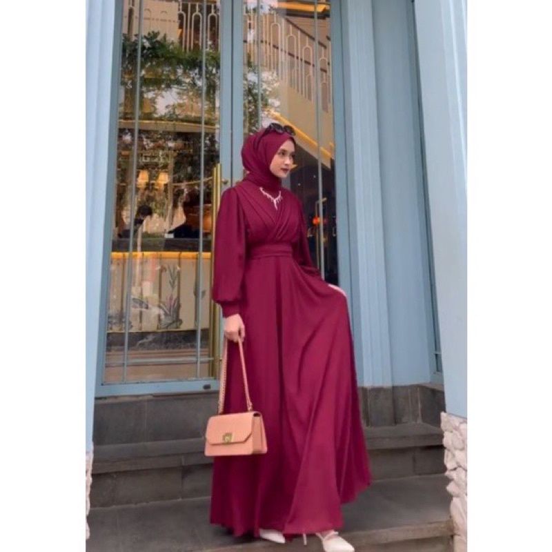 Gratis Ongkir Baju Gamis Wanita Kekinian Ceruty Dress Free Belt Gamis Modern Mewah Gamis Lebaran Terbaru Original