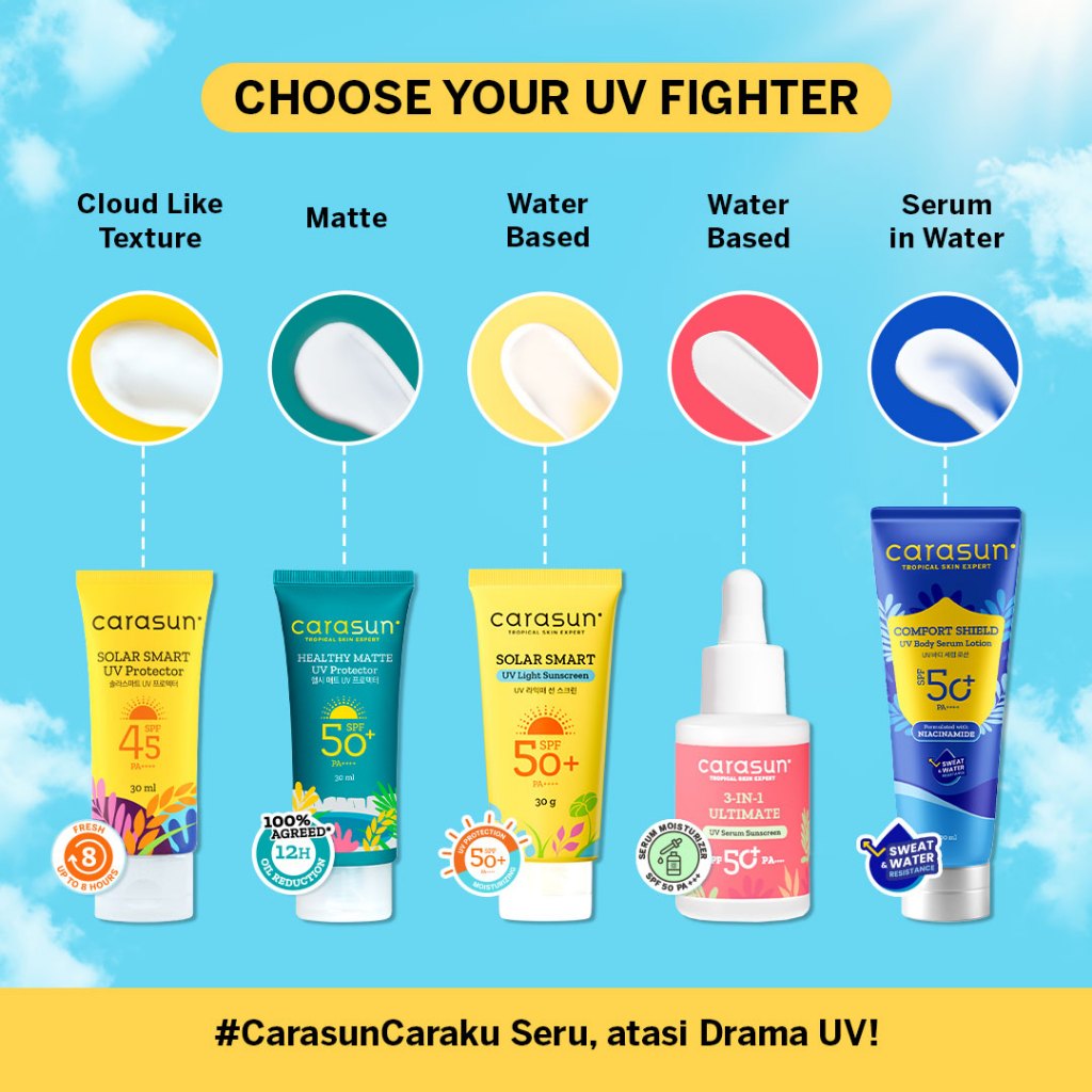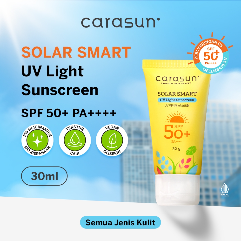 CARASUN Solar Smart UV Light Sunscreen SPF 50+ PA++++ 30g | Sunscreen Ringan Tekstur Cair Perlindungan Mencerahkan Semua
