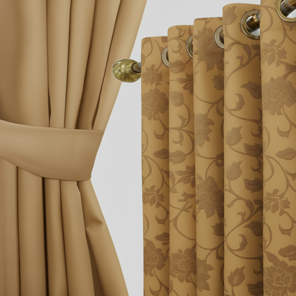Gorden Jendela Pintu Minimalis Katun Polos Emboss 10Lubang Smokring Tinggi 120 150 180 200 220 Cm