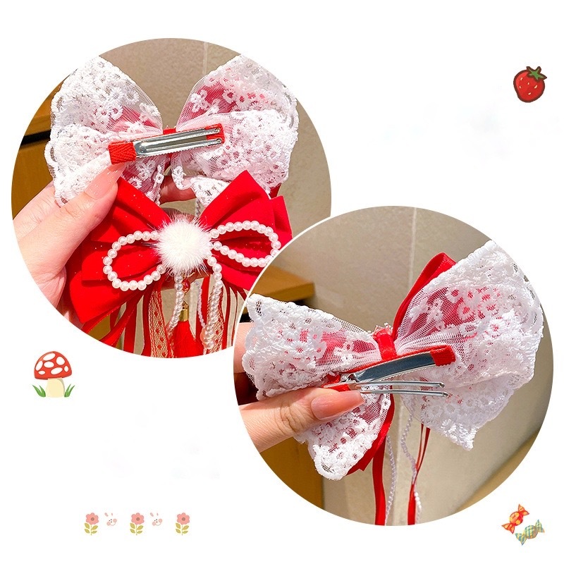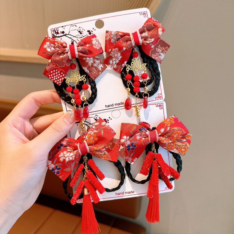 Jepitan Rambut Pita Imlek Anak Kepang Meihua Ikat Set Sepasang Jepit Rambut China Aksesoris Fashion Kids