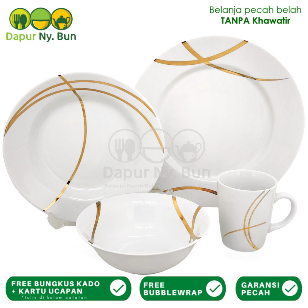 4 Pcs Single Dinner Set Golden Line Hampers Tableware Piring Mangkok Gelas