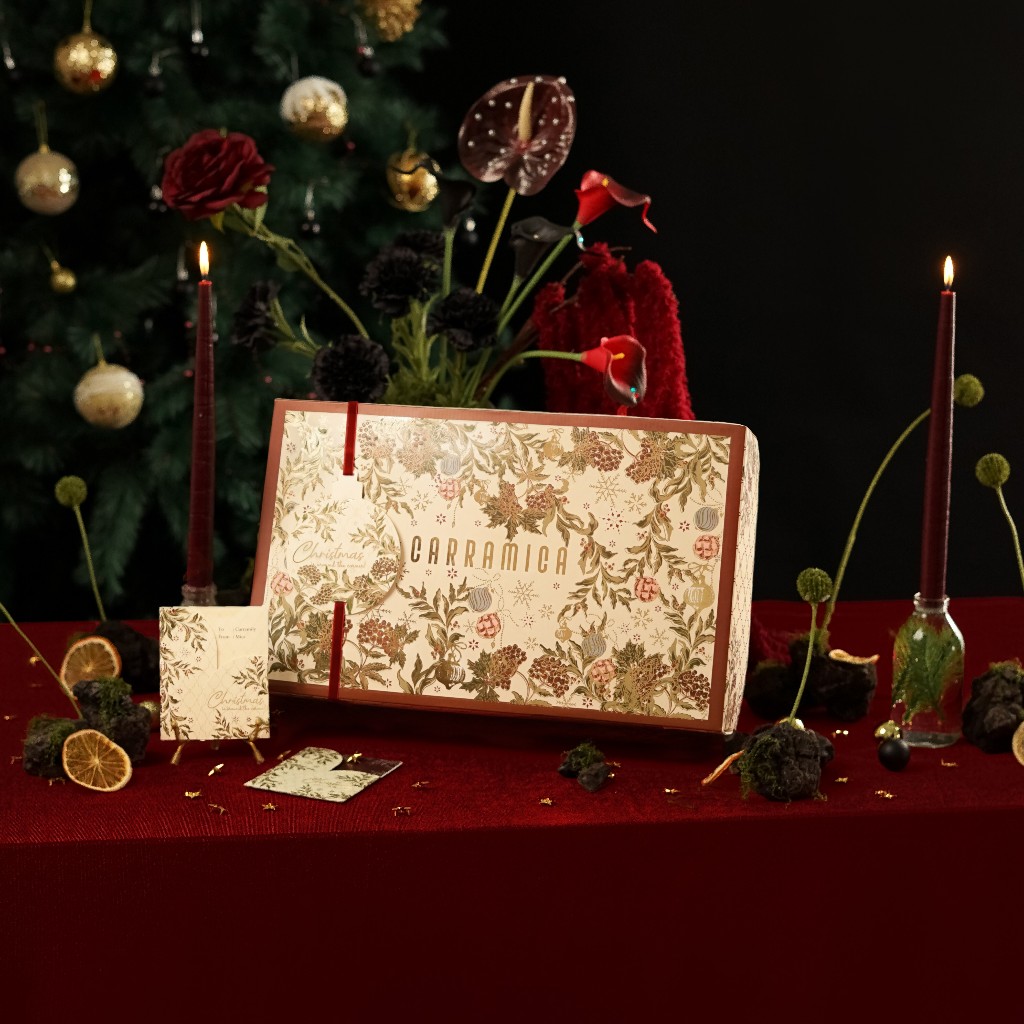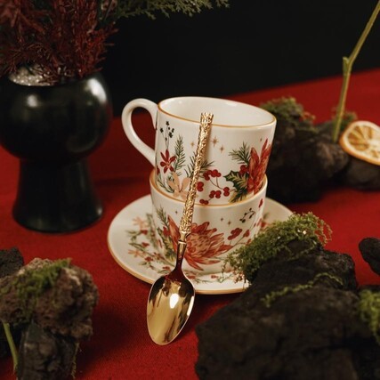Carramica Hampers Christmas Florette Tea Set/Gelas Piring XMAS Set Premium