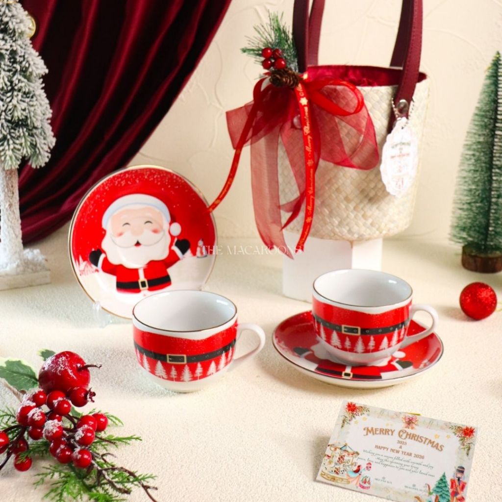 Parsel Tas Anyaman Natal isi Cangkir Set - Hampers Keranjang Natal Isi Cangkir Piring