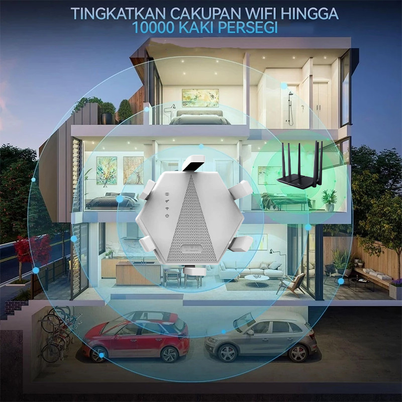 eNest WiFi Extender Repeater WiFi 6 Dual Band - Penguat Sinyal, Jangkauan Luas 10000 Kaki, e Repeater/AP/Router, Untuk R