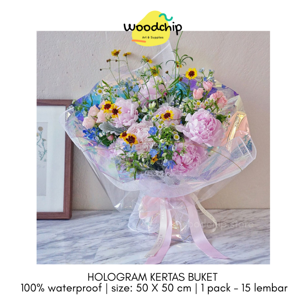 HOLOGRAM 1 PACK ISI 15 LEMBAR (50 x 50 cm) KERTAS BUKET BUNGA Plastik OPP holographic rainbow transparent pelangi kertas