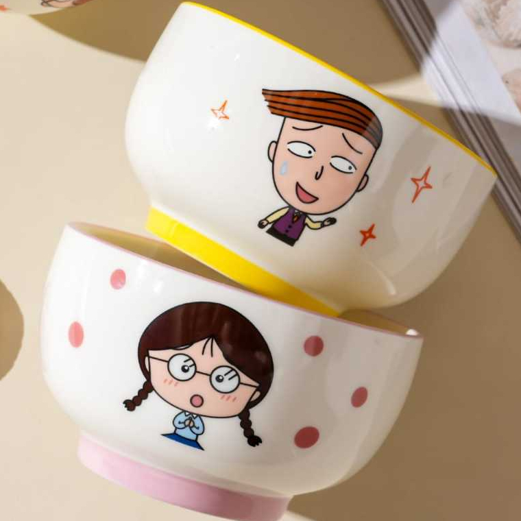 Hampers Hadiah Kado Mangkok Keramik Anak Chibi Marukochan Bowl Set Isi 4 pcs