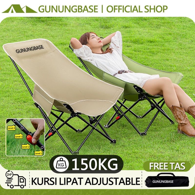 Gunungbase Kursi Lipat Adjustable Upgrade Baru 4 Tingkat Pengaturan Dengan Sandaran Kepala Mudah Dibawa Kuat/Lebar/Tebal