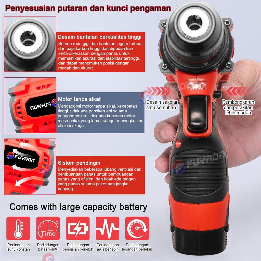 FUYAON Bor Listrik Motor Tanpa Sikat 2-In-1, Bor Listrik 16.8V Motor Tanpa Sikat Daya Tahan Super Bor Listrik Murah