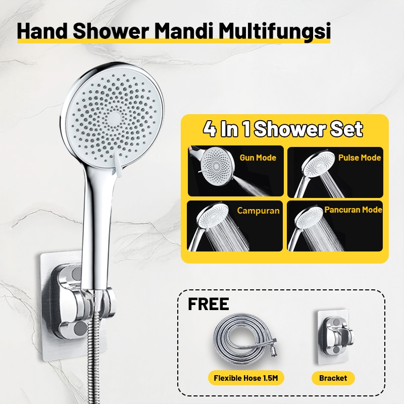 Hand Shower Kamar Mandi Paket 4 In 1 Shower Set Panel Shower Tekanan Tinggi Supercharged Fungsi Hadiah Selang 1.5M Brake