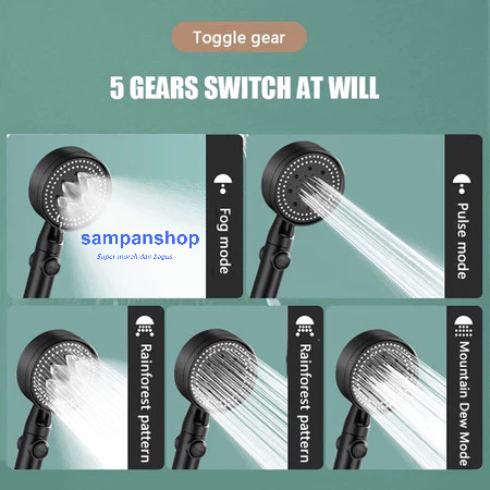 Hand Shower Mandi Premium Pancuran Tangan Portable Kamar Mandi Dapat Disesuaikan 5Mode Dengan Selang