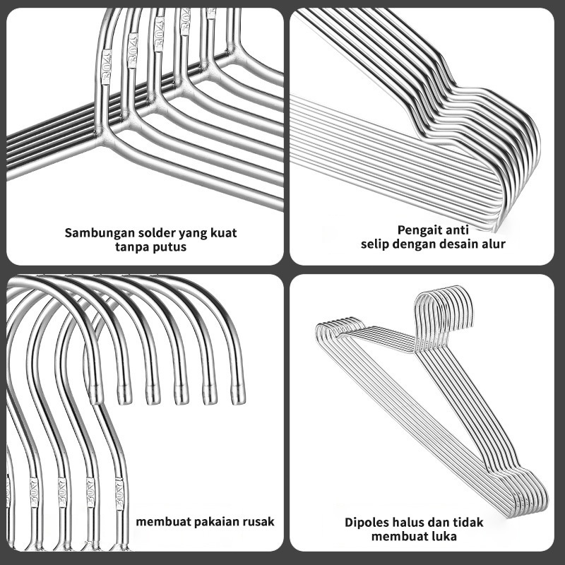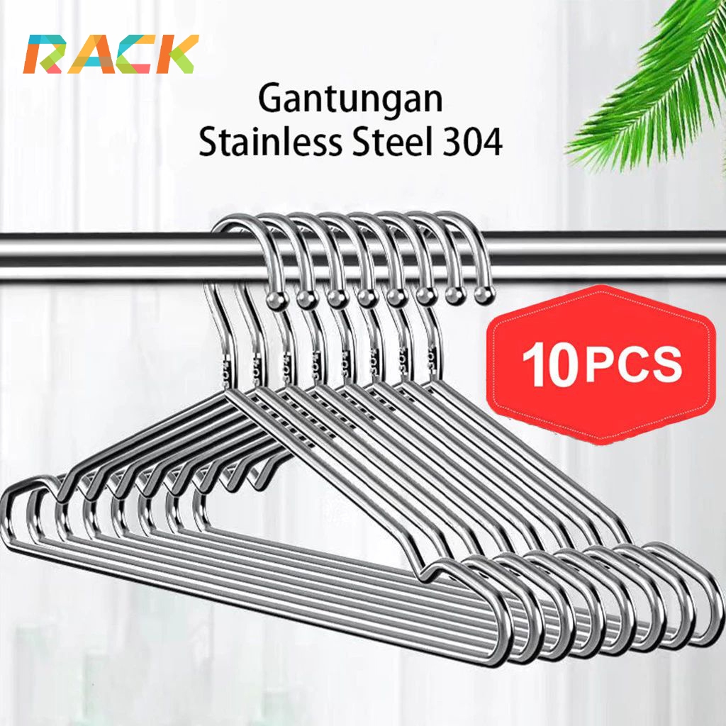 Hanger Baju Stainless Steel 304 Gantungan Baju 1 Paket 10 Buah Premium Hanger Gantungan Baju Dewasa Tebal Tahan Karat