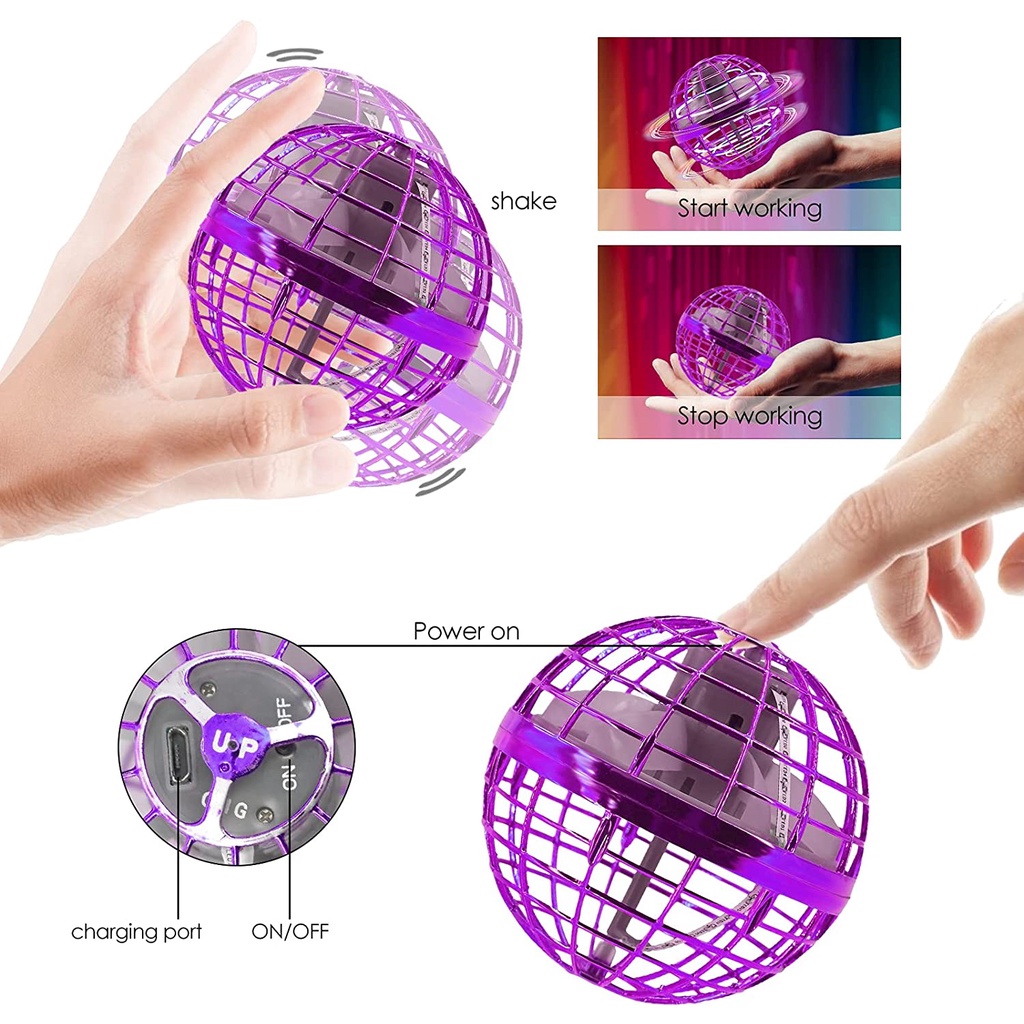 MAINAN BOLA TERBANG BERPUTAR MINI DENGAN LAMPU RGB / BOLA TERBANG AJAIB READY STOCK