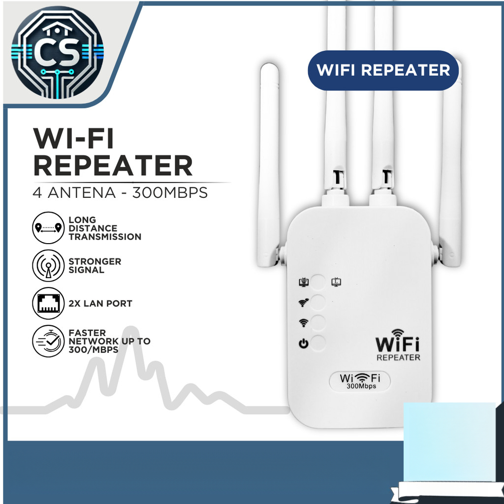 Wifi Repeater Extender 300Mbps 4 height Gain Antena Penguat Signal Res