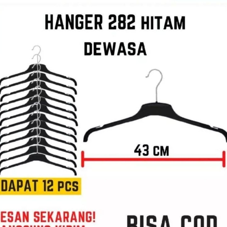 Hanger Baju Distro 282 Black ( 1 Lusin )
