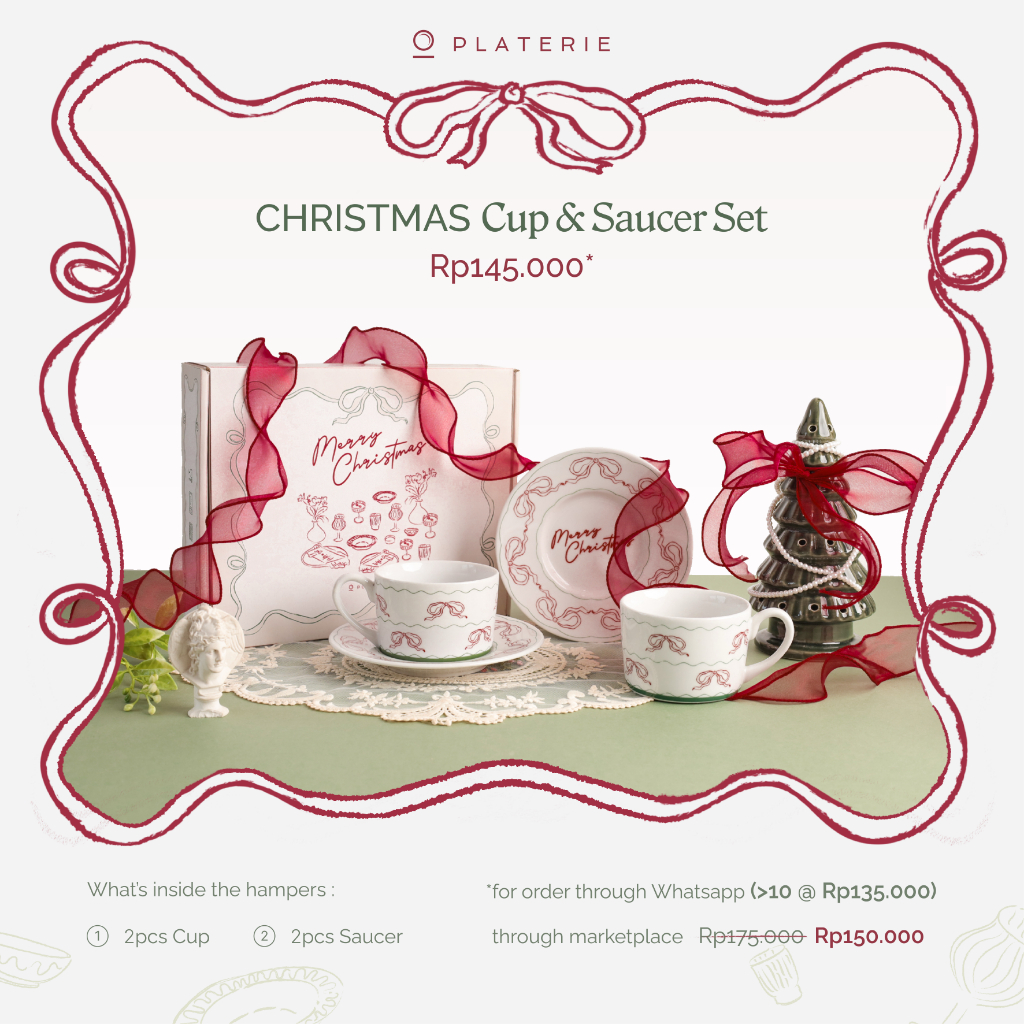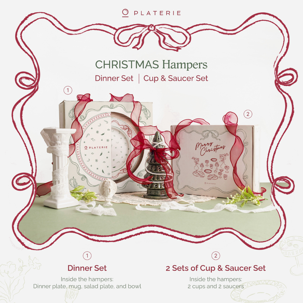 PLATERIE CHRISTMAS HAMPERS SET Red Ribbon Hampers 4pcs Set Hadiah Natal Ceramics Tableware w/ Box