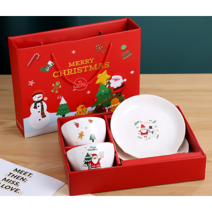 kado natal Hampers Christmas mangkok piring dengan Gifts box