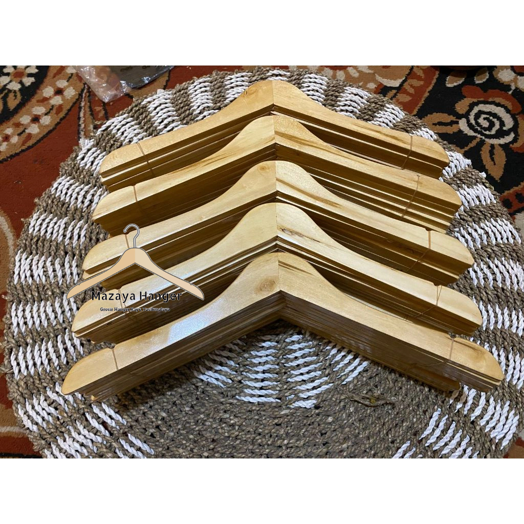 Hanger Kayu Baju Dewasa Warna Natural Grade B 12Pcs (1 Lusin)