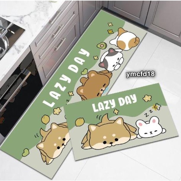 Hl0524 Keset Kaki Dapur Anti Slip Mat Keset Kaki Set 2 In 1 Motif Karakter Alas Lantai Kamar Mandi Serbaguna