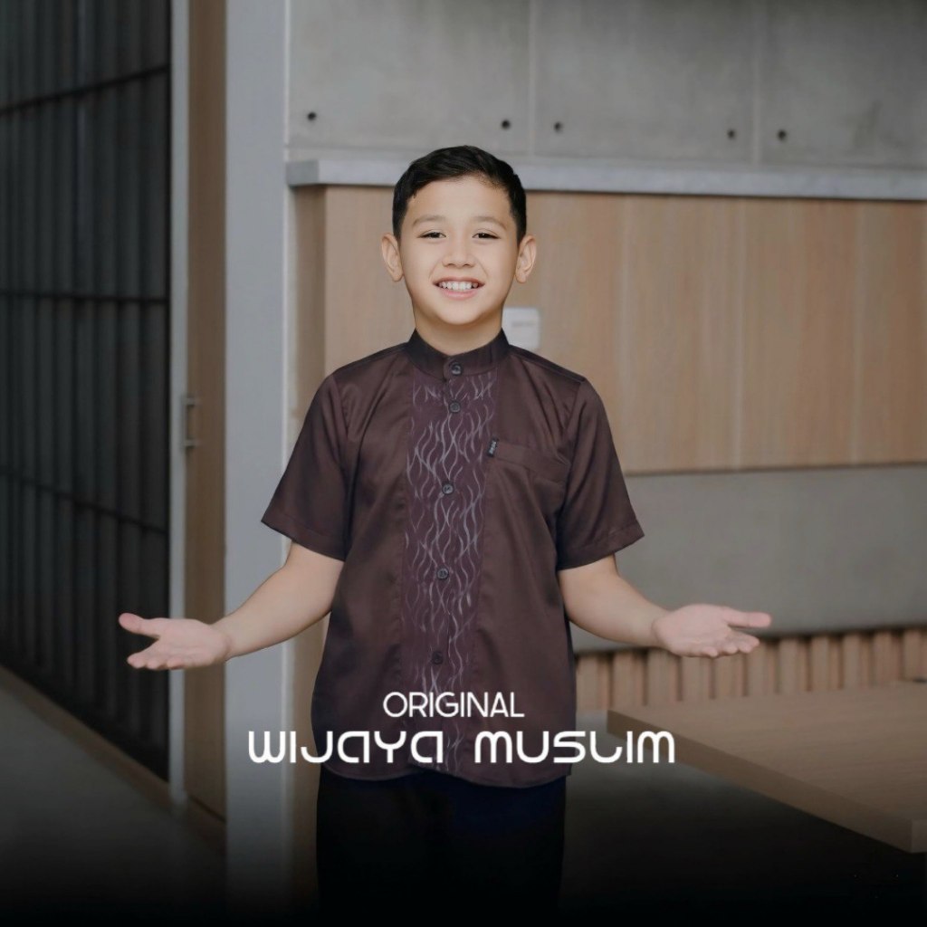 Baju Koko Pria Dewasa lengan Pendek Couple Ayah Anak Bahan Toyobo Import Kombinasi Embos Terbaru Warna Mahogani