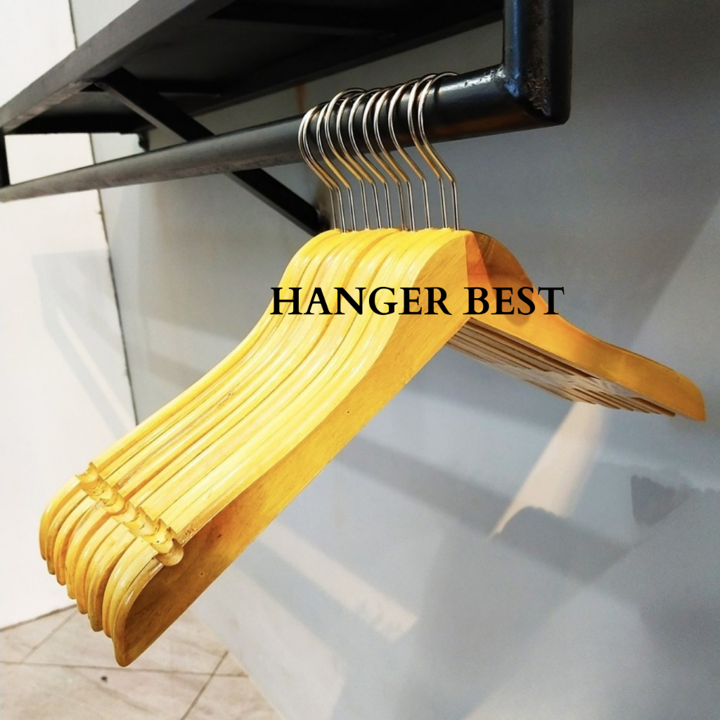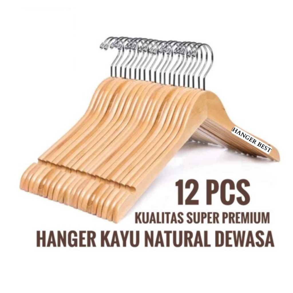Hanger Kayu Dewasa (Wood) Warna Natural 1 Lusin / Gantungan Baju ( Isi 12 Pcs)