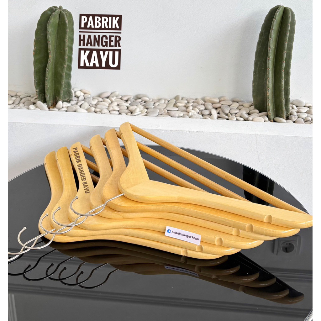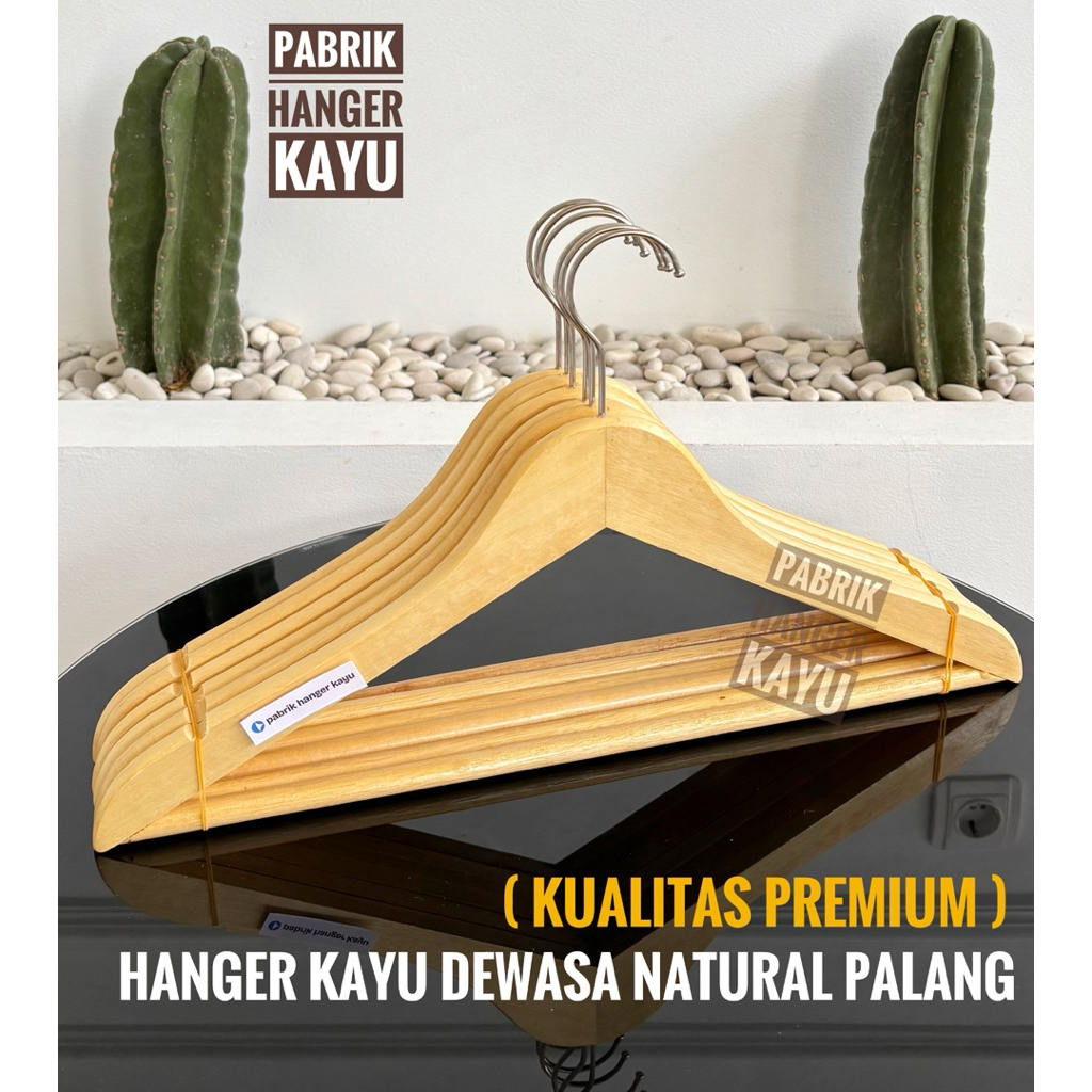 Hanger Kayu Natural Palang Dewasa Premium (Isi 10 Pcs)