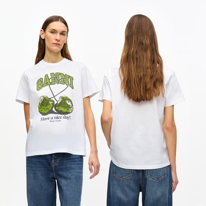 HYPESTORE KAOS WANITA GAANNI RELAXED FIT FRUIT GRAPHIC T-SHIRT - WHITE PEACH, XS