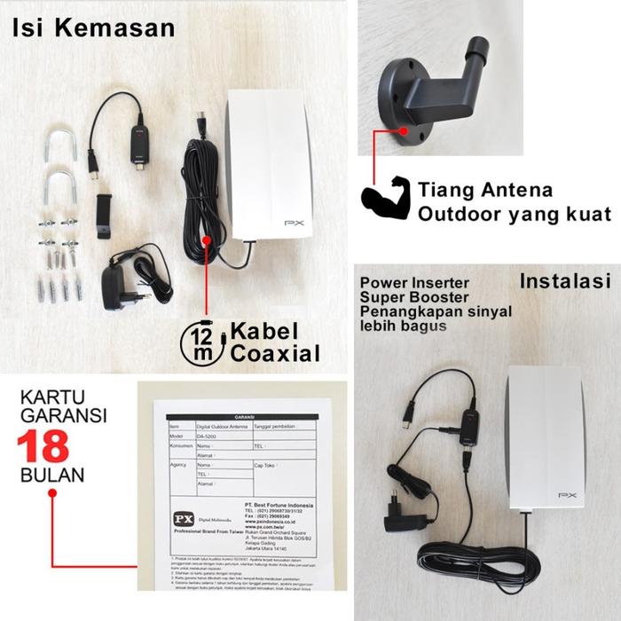 PX Antena TV Digital Indoor Outdoor Built-in Booster Untuk Dalam dan Luar Ruangan DA-5200 kayu kabel