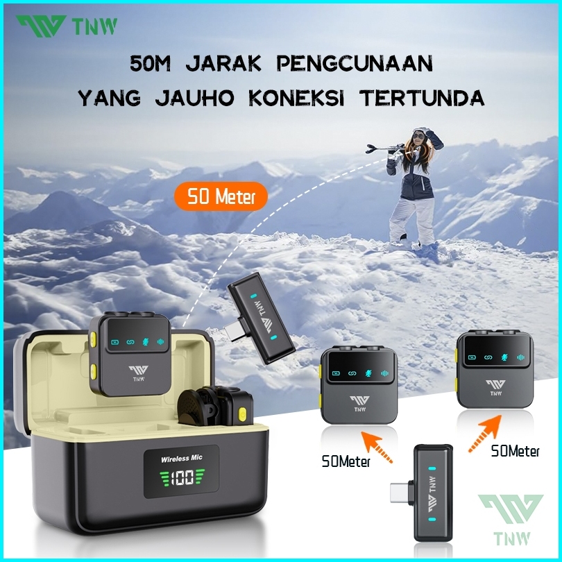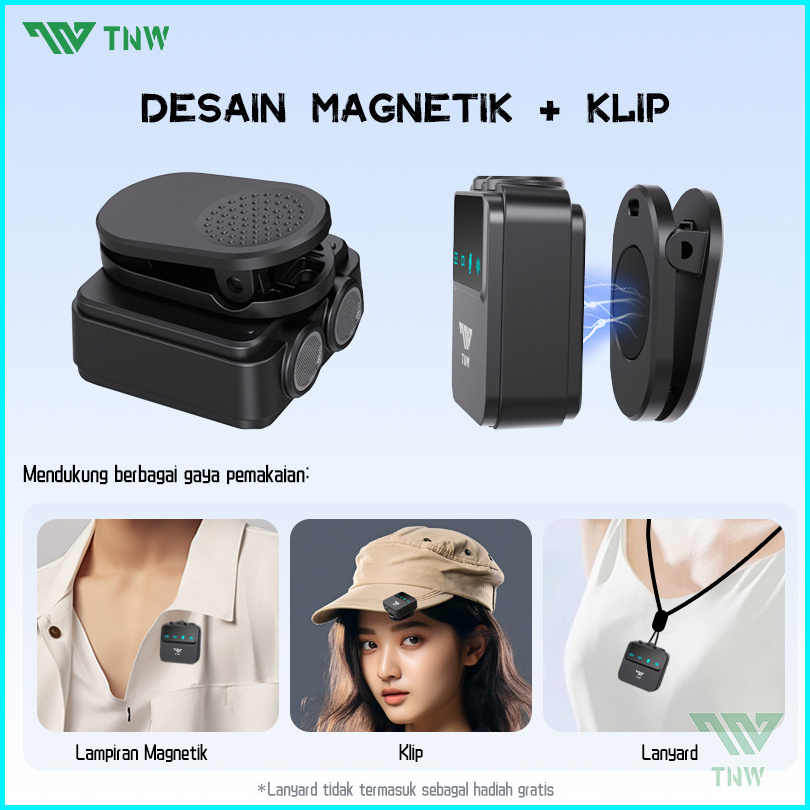Tnw A35 Wireless Microphone Clip On Mic Magnetic Mikrofon Nirkabel Lavalier Dual Mic Noise Reduction Untuk Video Vlog St