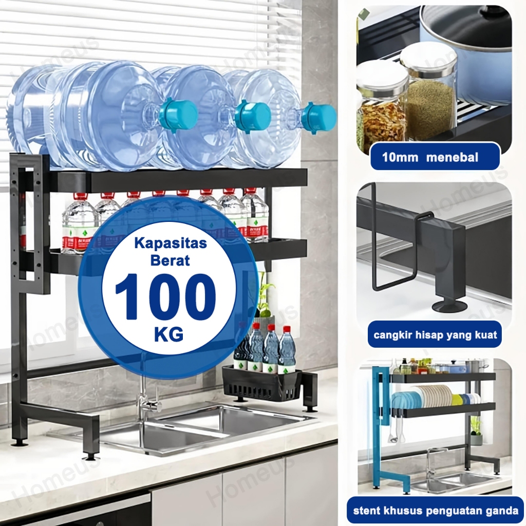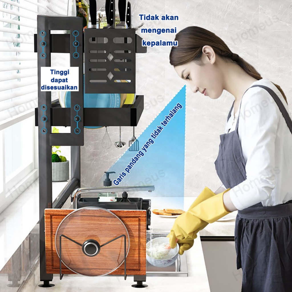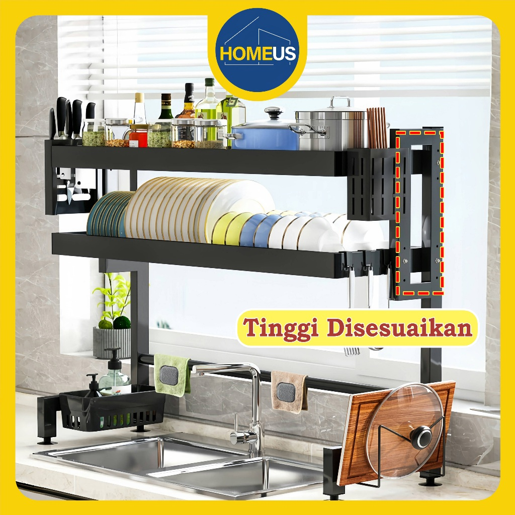 Homeus Rak Piring Rak Cuci Piring Wastafel Rak Dapur Anti Karat Stainless Steel Rak Piring Dengan Aksesoris