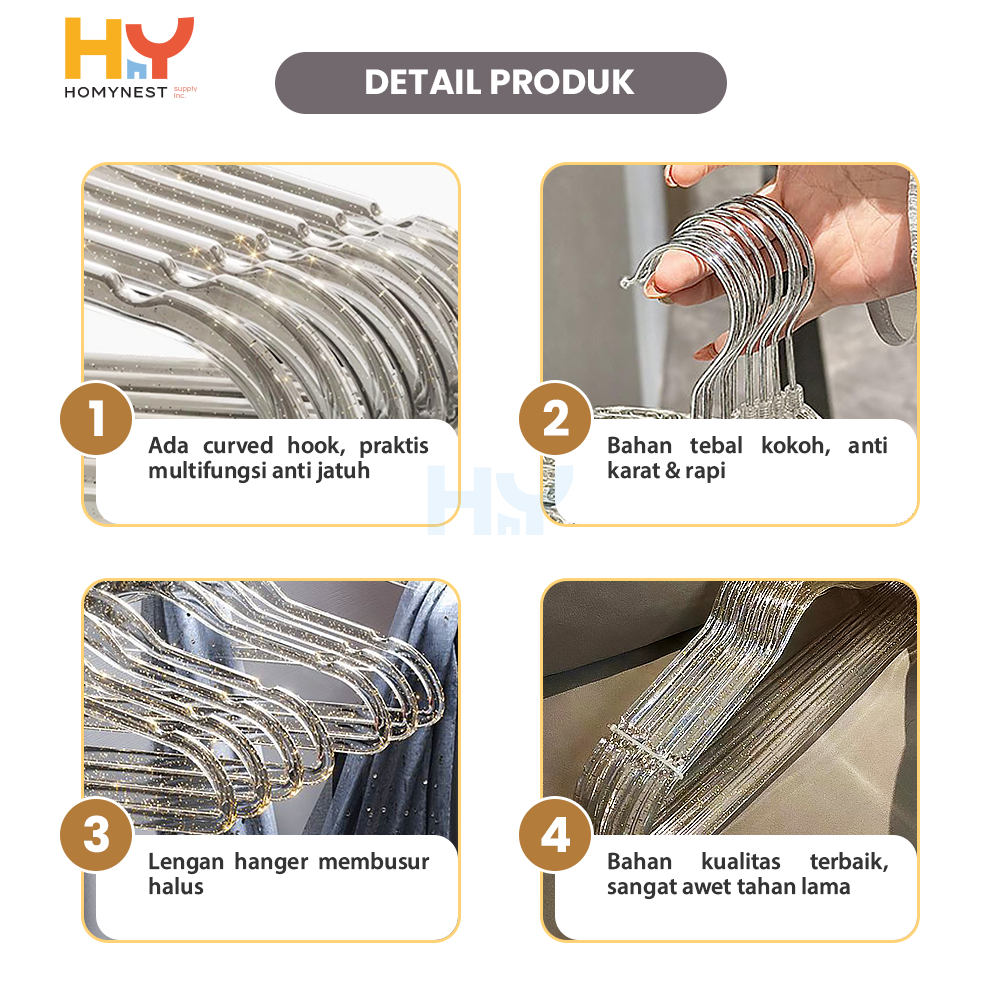 Homynest Gantungan Baju 1 Set Isi 10 Hanger Kristal Aestetik Hanger Baju Multifungsi