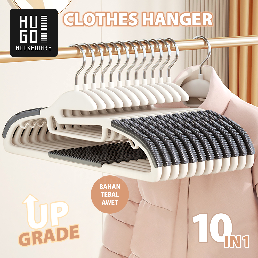 Hugo Hanger Gantungan Baju Dewasa Gantungan Baju Anti Slip Isi 10 Pcs Set Hanger Dengan Karet Bahan Tebal