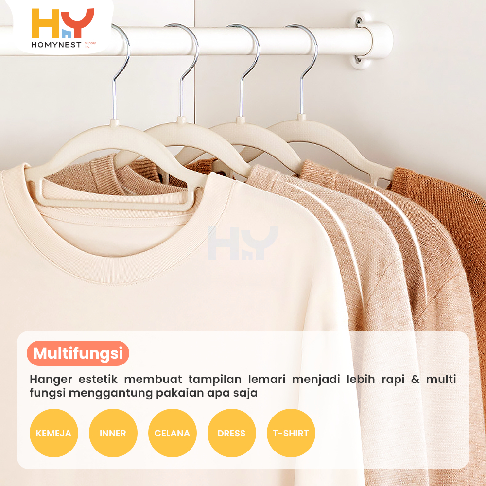 Homynest Gantungan Pakaian 1 Set Isi 10 Pcs Hanger Baju Bahan Tebal Multifungsi Gantungan Anti Slip