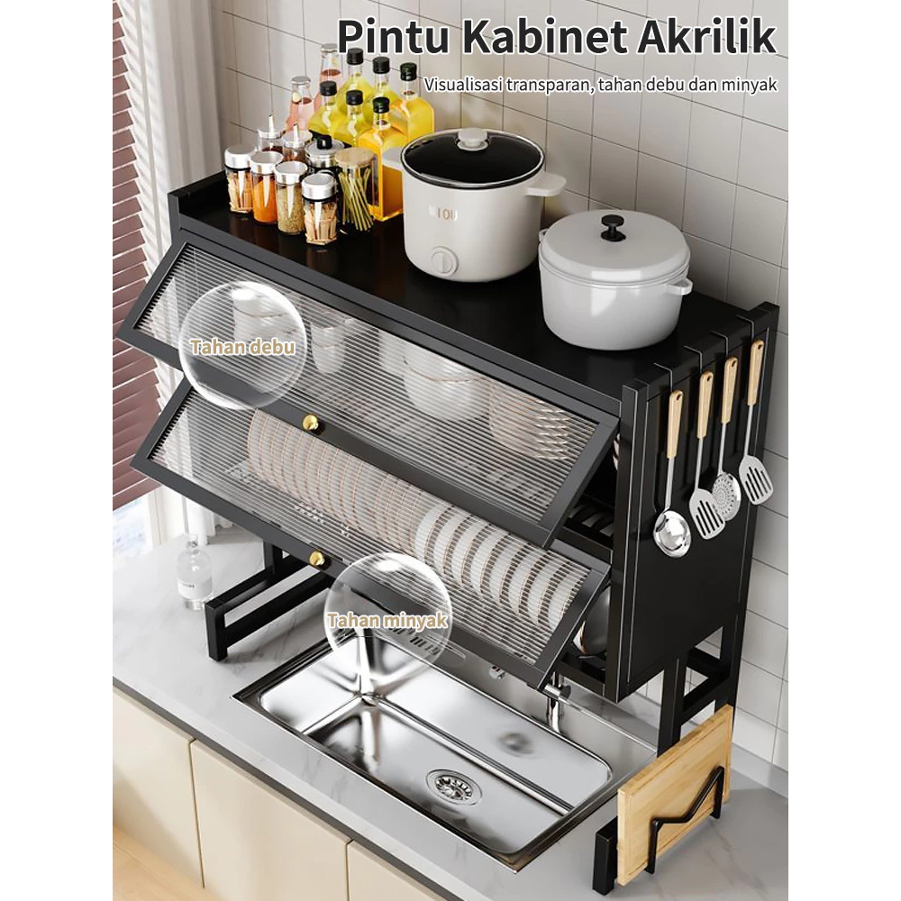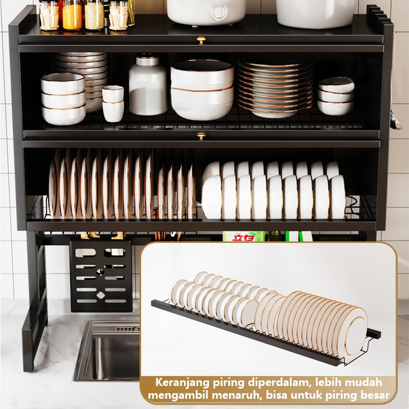 Homsaura Rak Piring Tertutup Rak Piring Wastafel With Cover Stainless Steel Rak Dapur Multifungsi