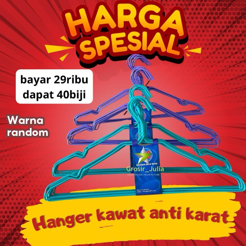 Isi 40Pcs Hanger Kawat Warna Gantungan Baju Anti Slip Anti Kawat Dewasa