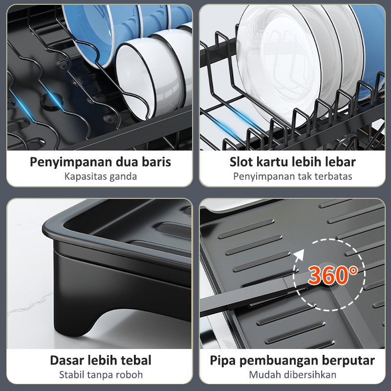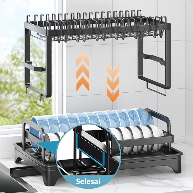 Ispecle [Tidak Memerlukan Instalasi] Rak Piring Dapur Stainless Steel Penyimpanan Rak Pengering Piring Rak Mangkuk Pirin