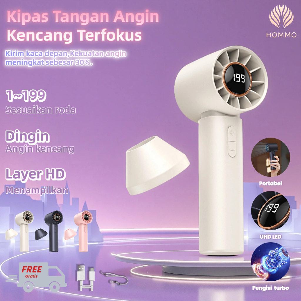 HOMMO Kipas Genggam Portable Turbo Mini Fan Diffuser Fokus Turbo 199 Kecepatan LED UHD Type-C FB08
