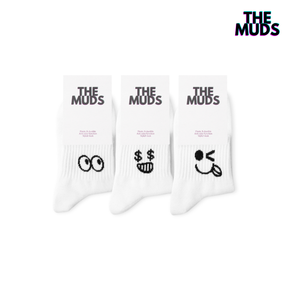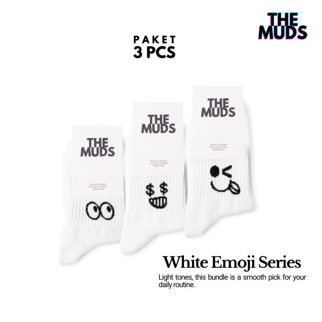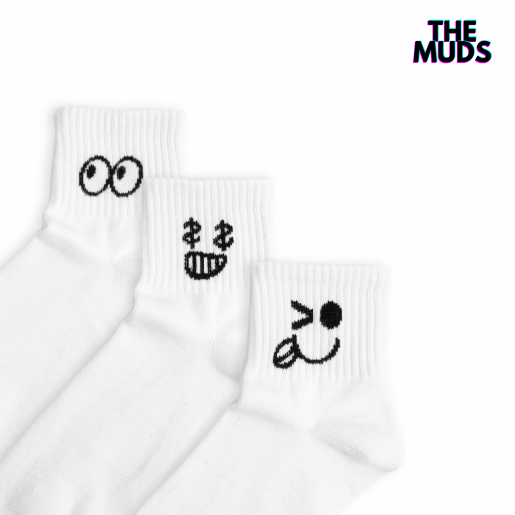 THE MUDS - Paket Bundling 3 Pasang Kaos Kaki Ankle Motif White Emoji
